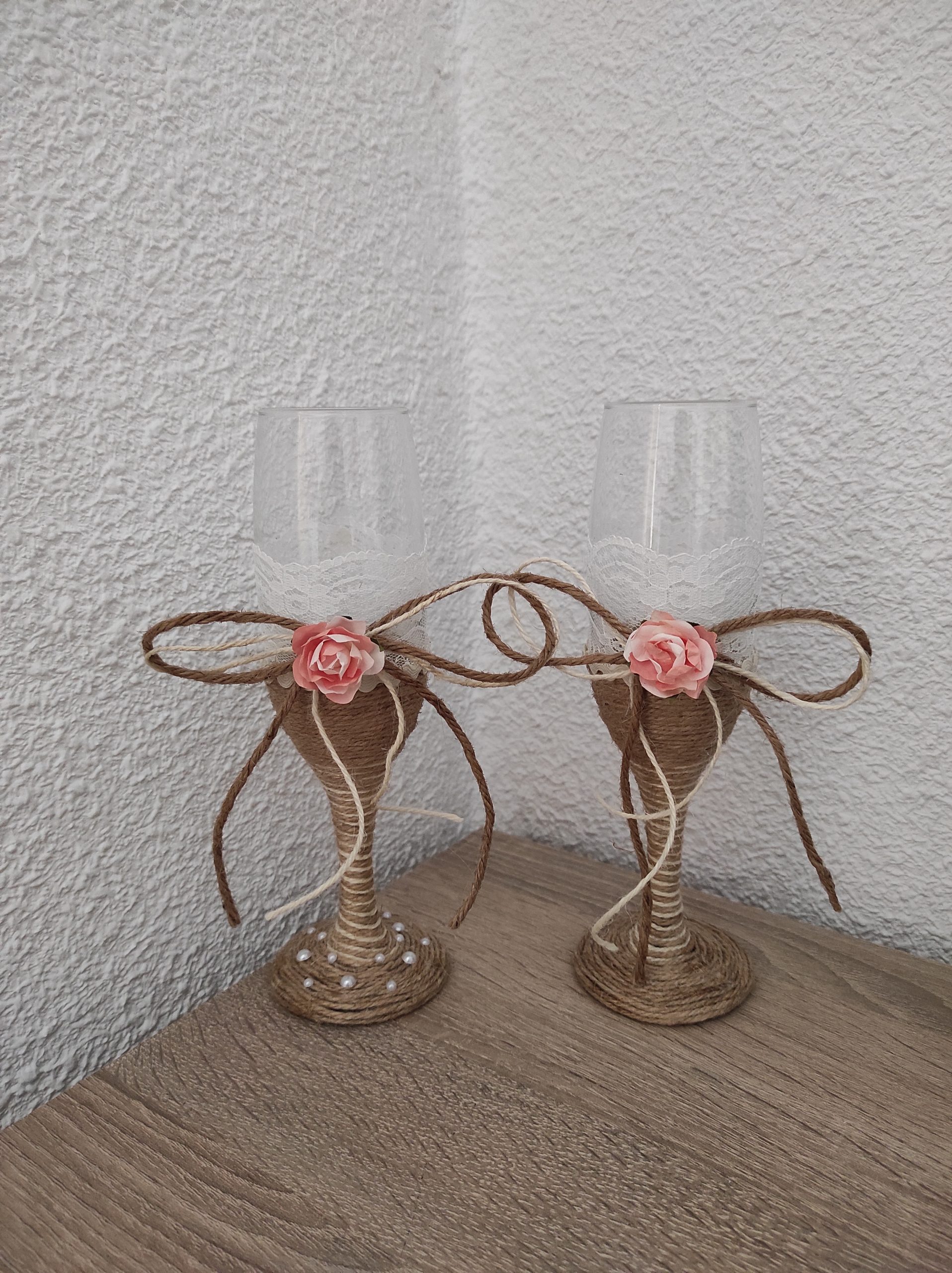Copas decoradas ha mano con mucho cariño para brindar en ocasiones especiales.